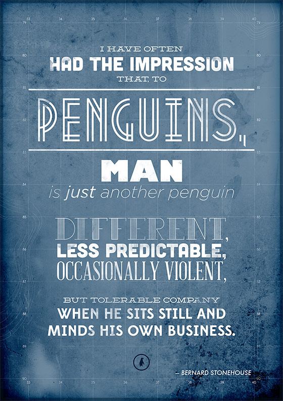 This year's winner, Robin Lorimer, chose 'Penguin' and I decided to experiment with something more typography focused rather than illustration based. This quote by British scientist Bernard Stonehouse seemed to fit perfectly.